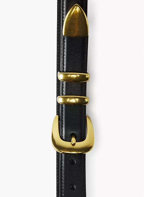 This is a classic belt with a solid brass buckle, end and keeper. It’s made with smooth 100% genuine leather.