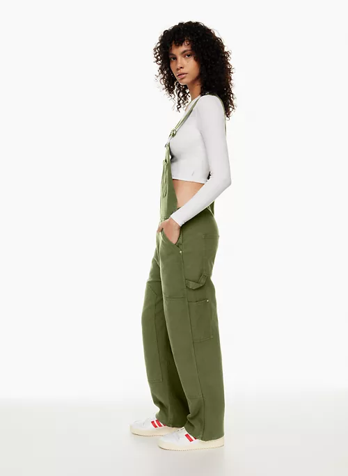 These are workwear-inspired overalls with patch pockets and a hammer loop. They’re made with structured twill cotton.