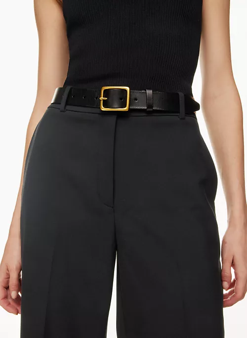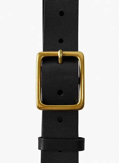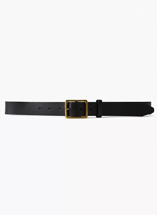 This is a classic belt with a rectangle buckle. It’s made with 100% genuine leather and finished with a solid brass ring buckle.