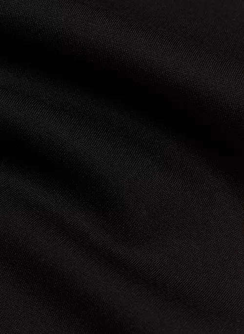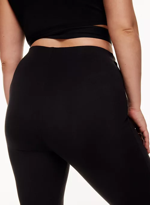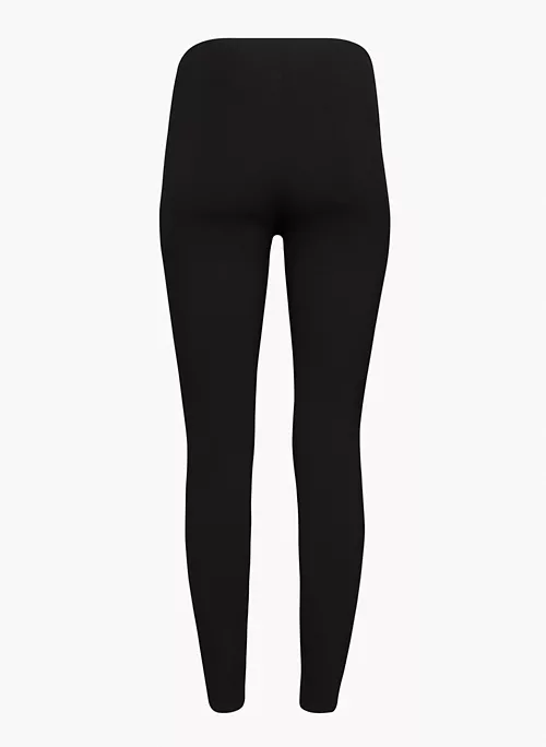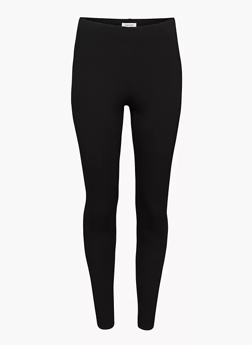 These are high-waisted leggings with an elastic waistband. Their made with a gutsy ponte fabric from Italy that holds you in.
