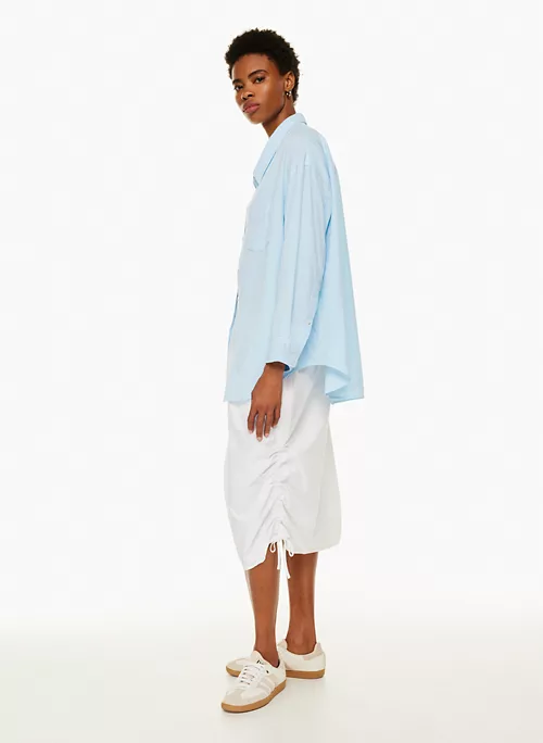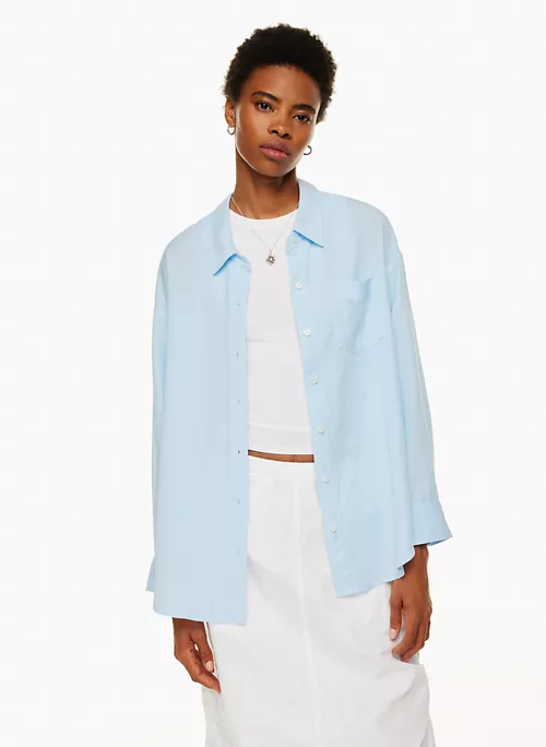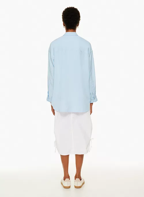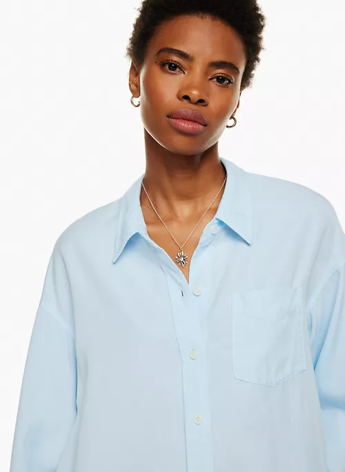 A capsule wardrobe essential perfected season after season, this is a long-sleeve button-up shirt with a front patch pocket and dropped shoulders. It’s made from soft, drapey twill that feels as luxe as it looks. This fabric is made with TENCEL™ Lyocell — responsibly sourced wood-based fibres produced through a closed-loop system that reduces environmental impact.