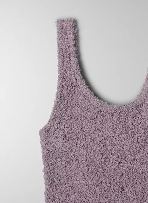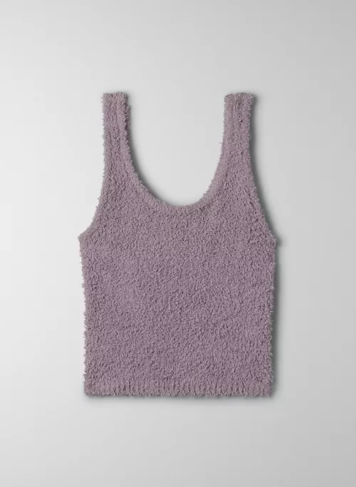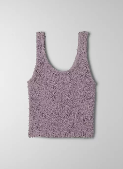 This is a cozy scoop-neck tank top with rib trim. It’s knit from ultra-plush, textural yarn.Ā