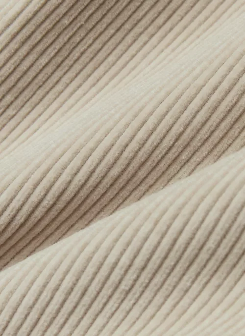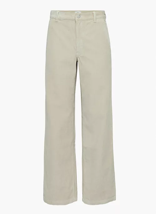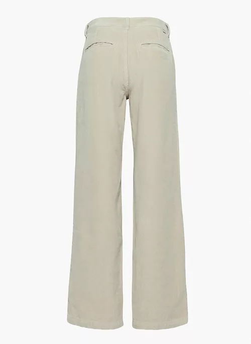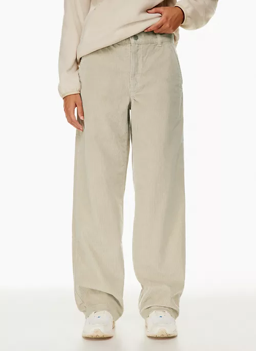 These are mid-rise wide-leg pants with back welt pockets. They’re made with ultra-plush and textural corduroy from France.