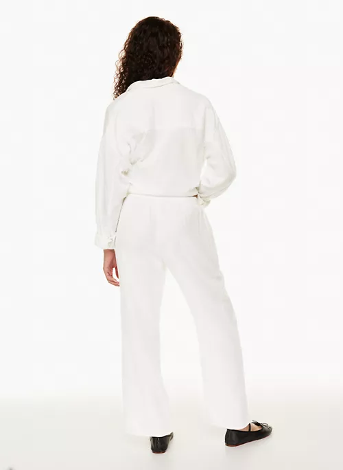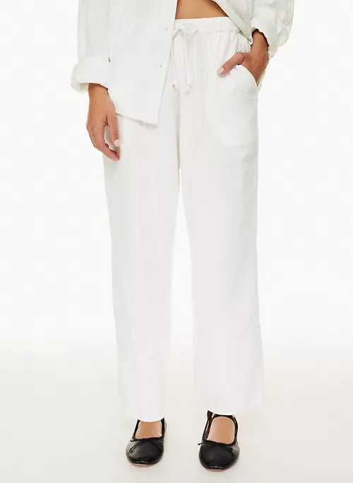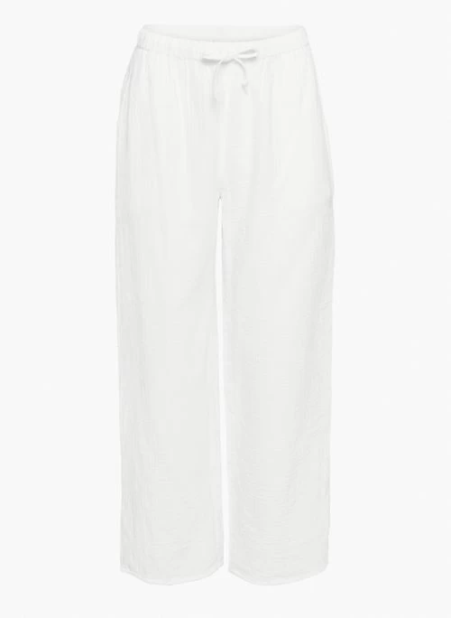 These are mid-rise pants with slash hand pockets and a cotton drawcord. They’re made with Cloud Cotton â airy fabric with an ethereal drape and gauzy feel. Itâs made from 100% organic cotton.