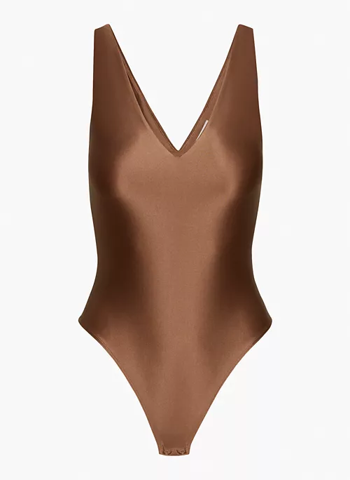 Based on an iconic Contour silhouette, this is a sleeveless bodysuit with a thong-cut bottom and a double V neckline. Itās made with Satinette ā a glossy, body-shaping fabric with a satiny, second-skin feel.