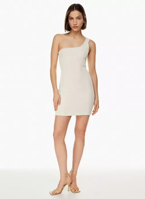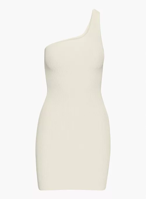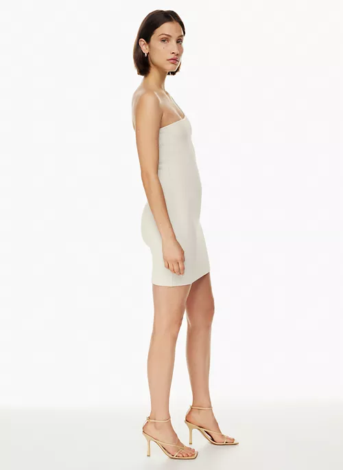 This is a one-shoulder mini dress with fully fashioned construction. Itās made with Sculpt Knit ā Babatonās signature figure-smoothing yarn. The perfect amount of stretch hugs in the right places to shape and sculpt your form. This version is constructed using an Ottoman stitch with close distinct ribs for a structured and textural feel.