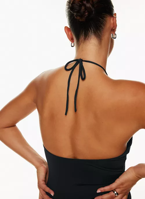 This is a halter-neck bodysuit with a thong-cut bottom and double-layer fabric. It’s made with Babaton’s signature Contour ā luxe, ultra-flattering fabric coveted for its smoothing effect and second-skin feel. Essential for every body.