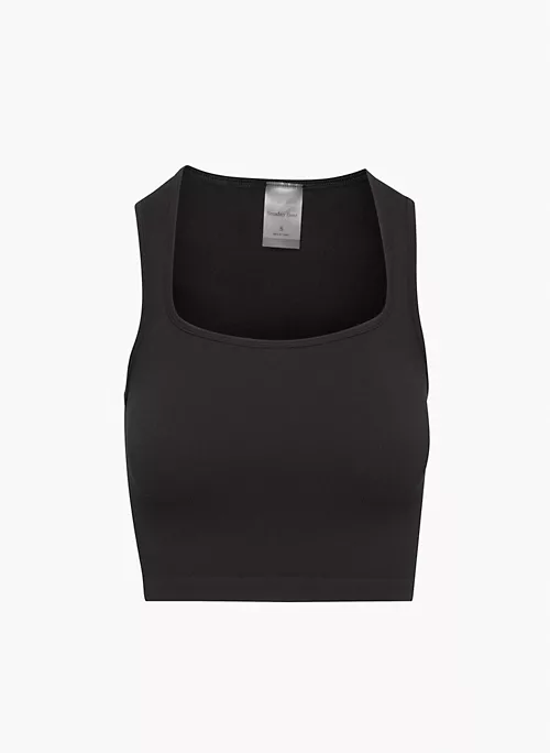 This is a square-neck tank. It’s made from SinchSeamless™ — a stretchy fabric with a second-skin feel and body-hugging fit.