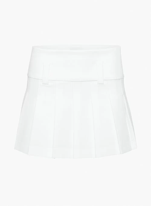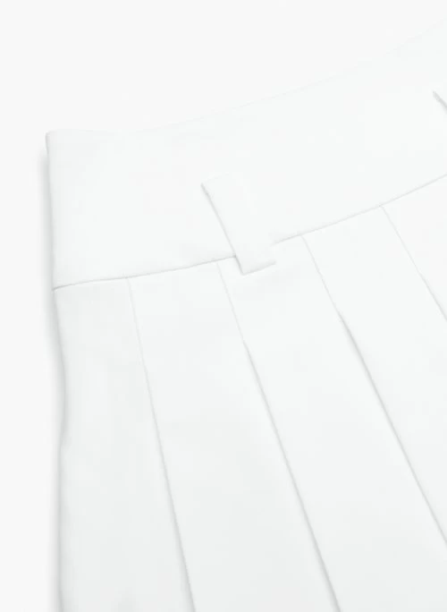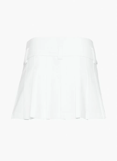 This is a mid-rise micro skirt with pleats. It’s cut from soft bi-stretch twill that’s made with recycled materials.