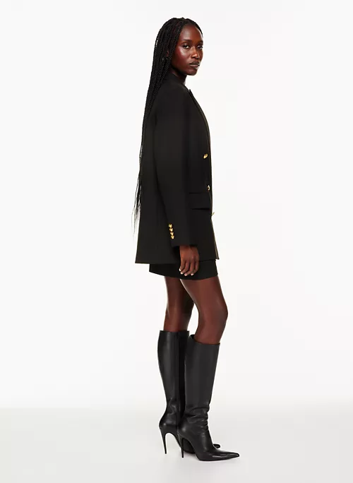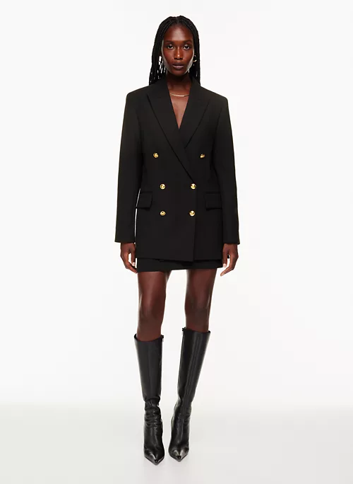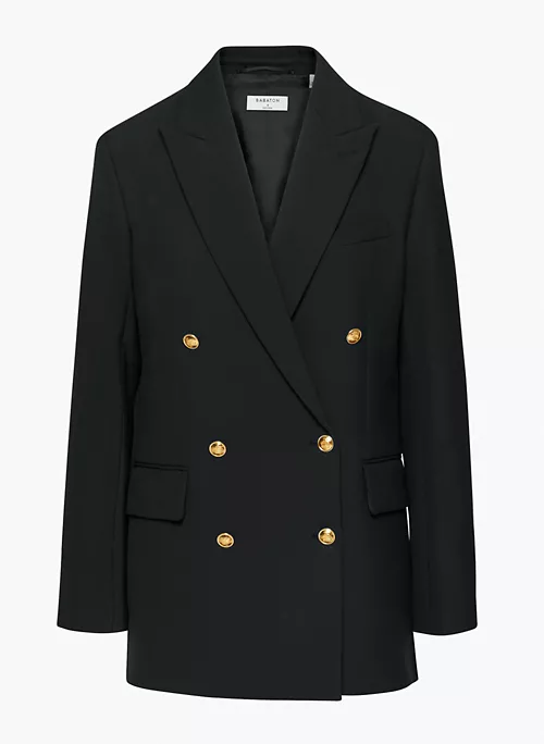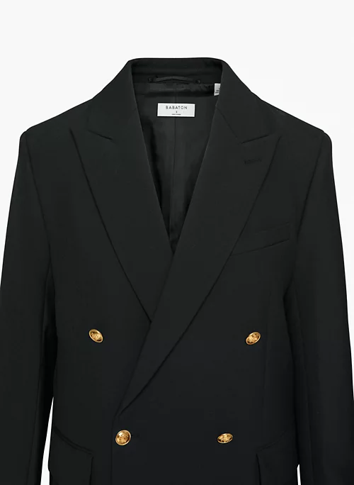 This is a fully lined double-breasted blazer with a peaked lapel and welt hand pockets. It’s made with (Re)ssential ā softly structured stretch fabric that holds its form while you move easy. Itās sourced from a premier Portuguese mill and made with recycled materials and LENZING⢠ECOVERO⢠Viscose ā responsibly sourced, wood-based fibres produced through a process that reduces impact on forests, biodiversity and water supply.