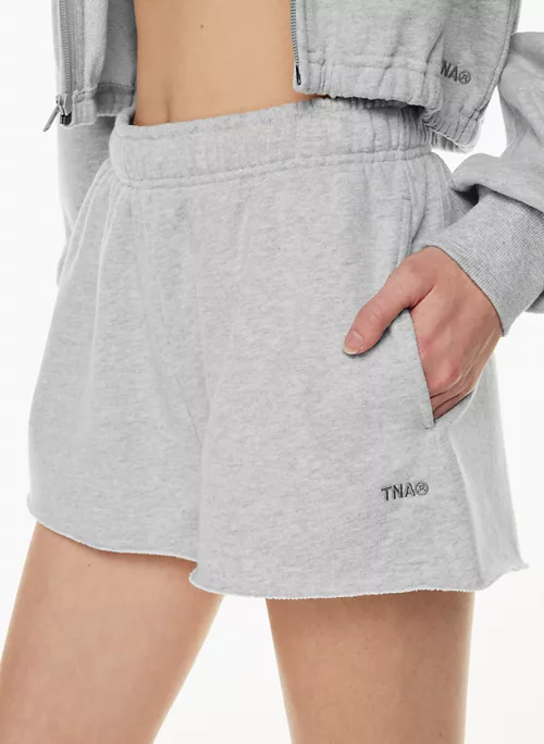 These are baggy sweatshorts with a high rise and dart pockets. They’re made with Tna’s Terry Fleece — all-season, midweight French terry with a looped back, soft drape and a breezy feel. Très luxe.