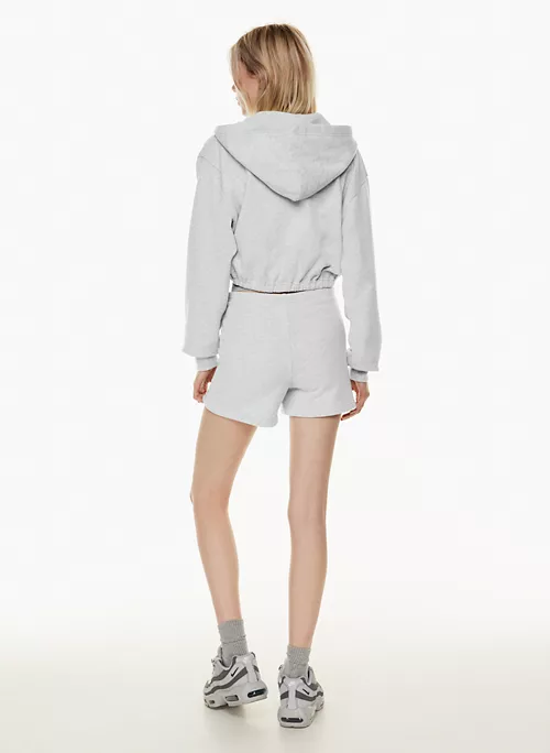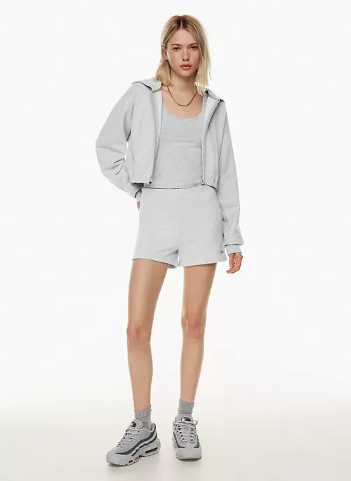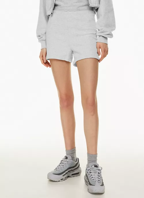 These are high-waisted sweatshorts with an elastic waist. They’re made with Tna’s Terry Fleece — all-season, midweight French terry with a looped back, soft drape and a breezy feel. Très luxe.