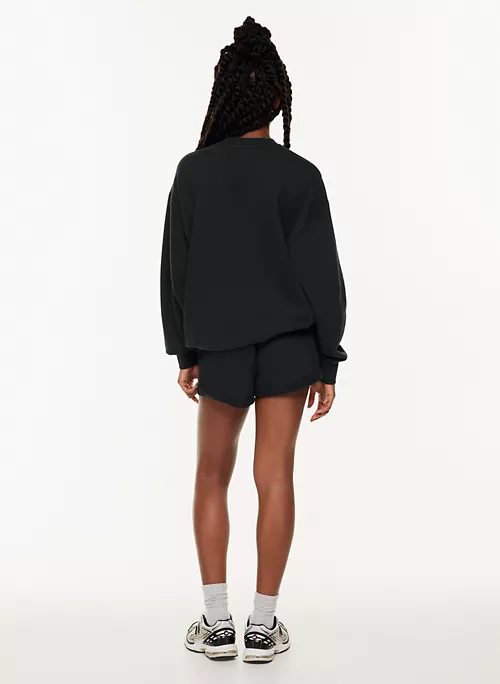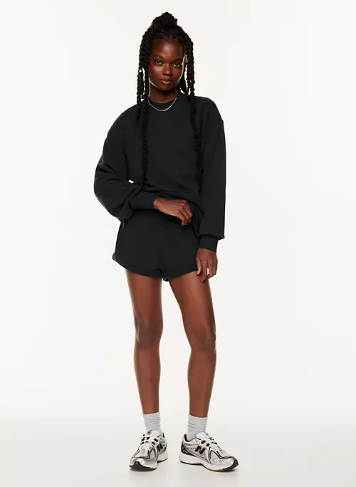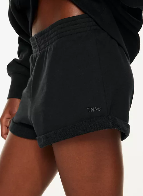 These are mid-rise sweatshorts with a cuffed hem. They’re made with Tna’s Terry Fleece — all-season, midweight French terry with a looped back, soft drape and a breezy feel. Très luxe.