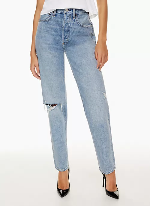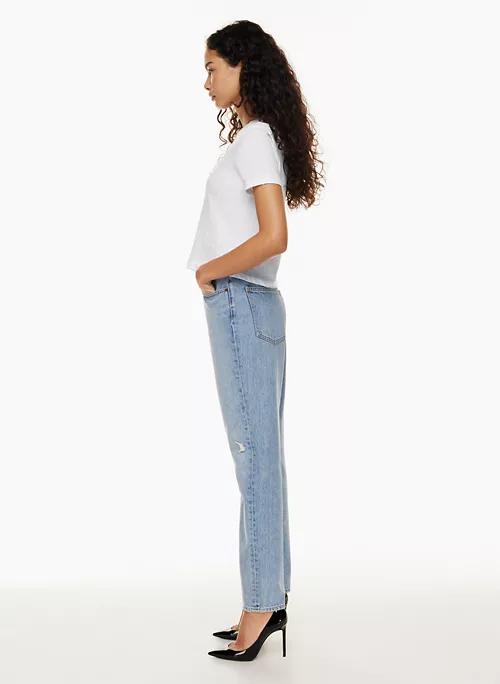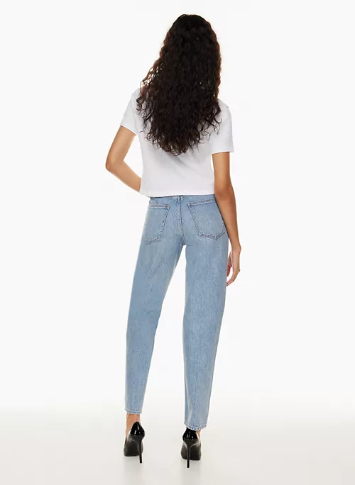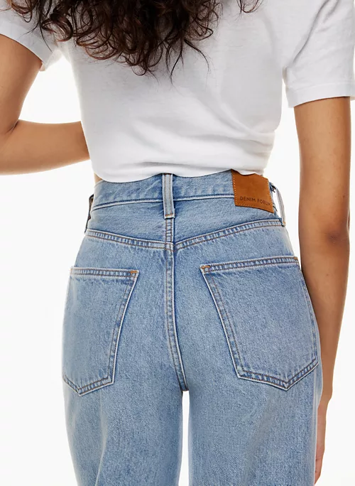 Inspired by the carefree spirit of the ’90s, The ’90s Boyfriend is Denim Forum’s signature relaxed tapered jean. They have a high rise and a tapered leg designed to hit at the ankle. Premium Italian 100% organic cotton denim only loves you more over time. This version comes in a light indigo wash with a rolled hem.