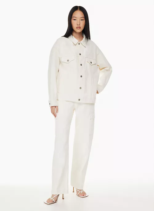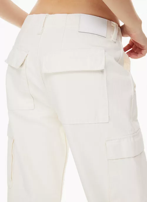 Inspired by the it-girl of the ’90s art scene, The Edie is Denim Forum’s low-rise cargo jeans. They feature slash hand pockets, back patch pockets and cargo pockets in case you’re short on storage. Premium Italian 100% organic cotton denim only gets better with wear. These ones come in a white wash with a clean hem.