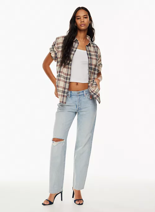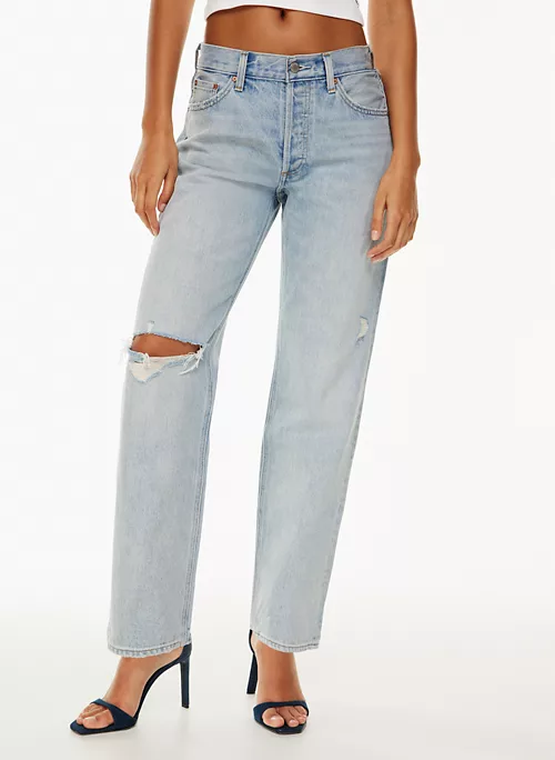 Inspired by the zeitgeist of ’90s grunge, the Joni is Denim Forum’s signature low-rise loose jean. Slouchy and oversized, these are big jeans with a bad attitude. Theyāre made from non-stretch 100% cotton denim from Japan ā known to only get better with wear. This version comes in a distressed light indigo wash with a clean hem.