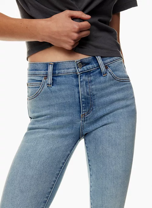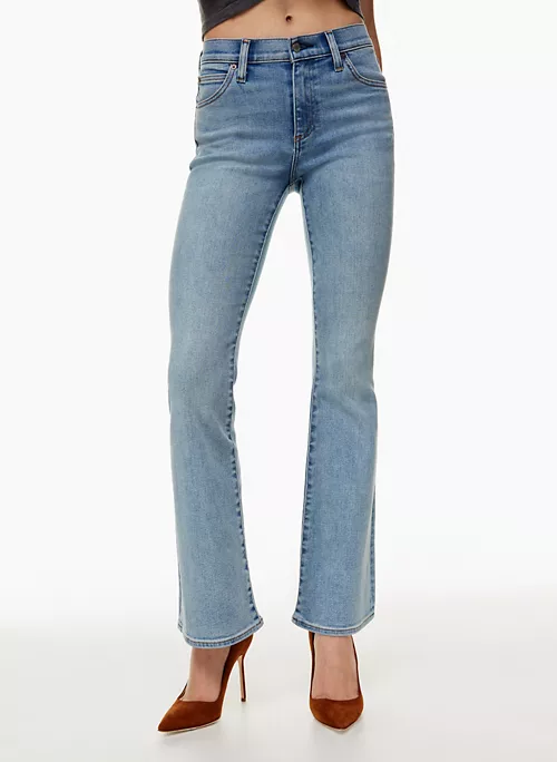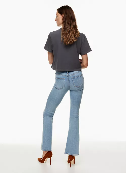 Inspired by the queen of disco, The Donna is Denim Forum’s signature mid-rise flare. They have a slim leg and a full-length inseam for a leg-elongating effect. They’re cut from premium Italian organic cotton denim that has high stretch and a lifting effect. This version comes in a light medium indigo wash with a clean hem.