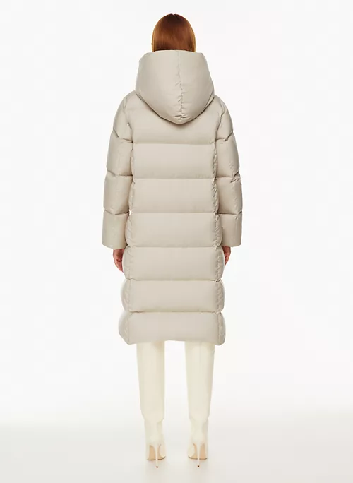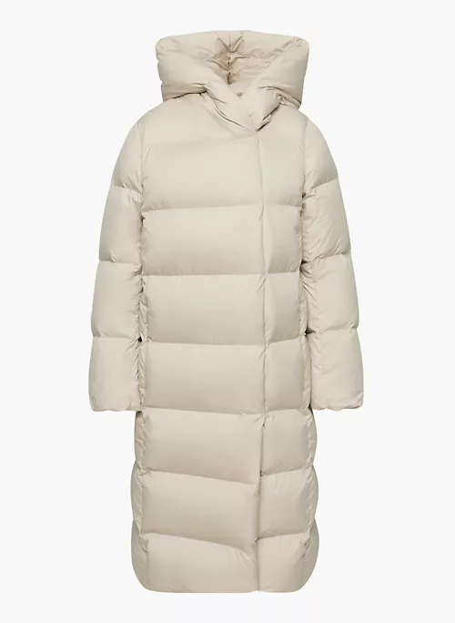 Engineered to deliver warmth to -30°C / -22°F, this is a full-length puffer with a wrap front, horizontal quilting and a cozy puff hood that keeps cold weather out. It’s filled with 100% responsibly sourced, 700+ fill-power goose down that provides ultra-warm, lightweight insulation. Itās made with Soft Satin ā water-repellent and windproof fabric with a soft, peachy feel. This fabric is sourced from a Japanese mill that specializes in performance fabrics.