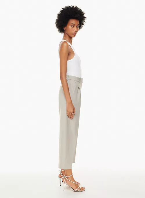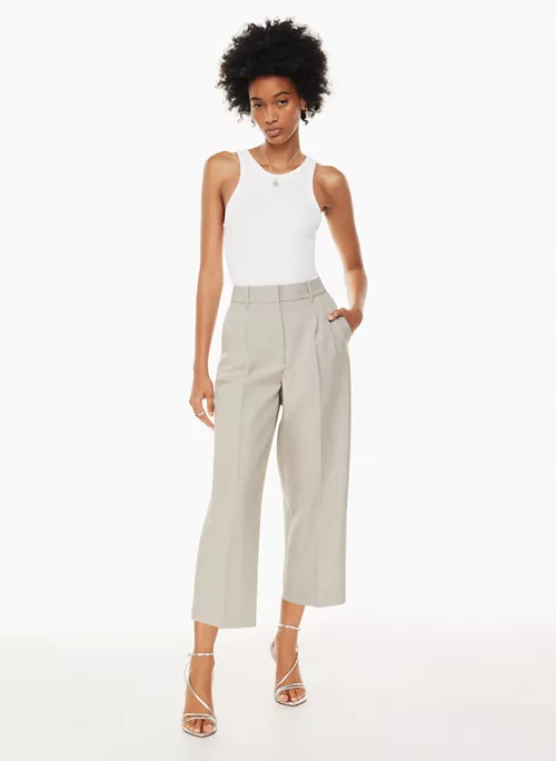 The cropped version of a Wilfred icon, these are tailored-yet-relaxed high-rise pants with front knife pleats, an easy drape and a wide leg. They’re cut from (Re)ssential — softly structured stretch fabric that holds its form while you move easy. This fabric is sourced from a premier Portuguese mill and made with recycled materials and LENZING™ ECOVERO™ Viscose — responsibly sourced, wood-based fibres produced through a process that reduces impact on forests, biodiversity and water supply.