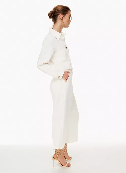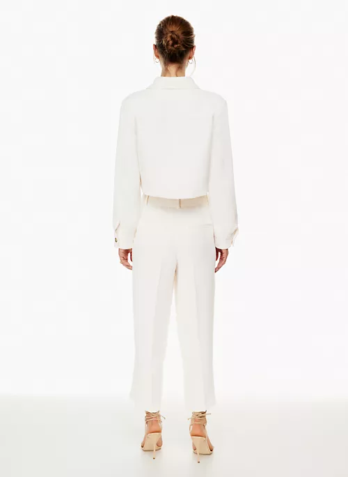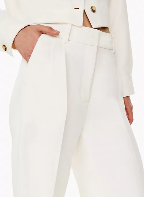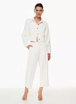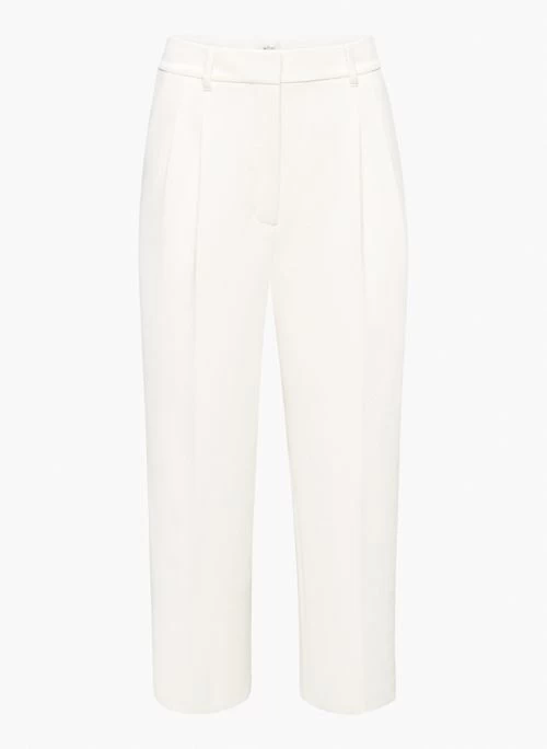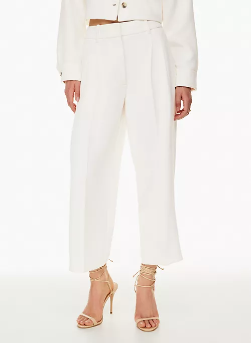 The cropped version of a Wilfred icon, these are tailored-yet-relaxed high-rise pants with front knife pleats, an easy drape and a cropped wide leg. They’re made from Crepette™ — Wilfred’s iconic crepe fabric famous for its subtle texture and breezy, effortless drape. This fabric is sourced from an innovative Japanese mill.