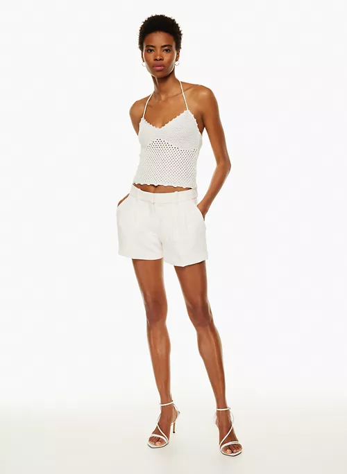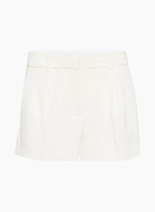 These are low-waisted shorts with double knife pleats at the front. They’re made from Crepette™ — Wilfred’s iconic crepe fabric famous for its subtle texture and breezy, effortless drape. It’s sourced from an innovative Japanese mill.