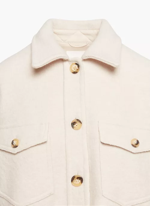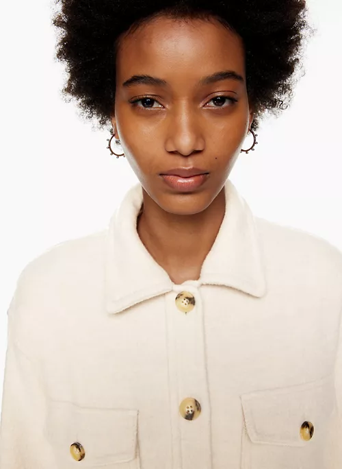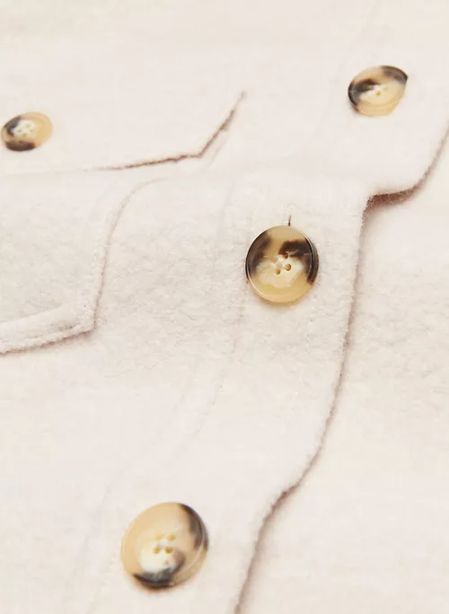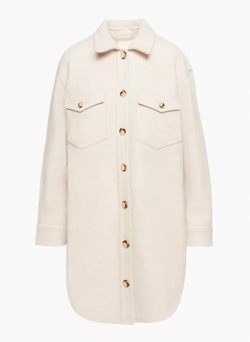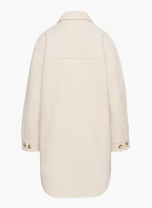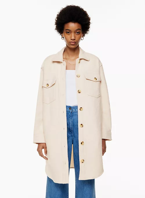 Inside, outside — everywhere. A Wilfred Free classic beloved for its relaxed silhouette and all-season versatility, The Ganna™ delivers the relaxed silhouette of a shirt with the warmth of a jacket, transcending the typical rules of indoor/outdoor style. It’s crafted with dropped shoulders, patch pockets and a rounded hem for throw-over-anything ease. This version has a longer inseam and is expertly tailored with boiled merino wool that’s plush, dense and textural.