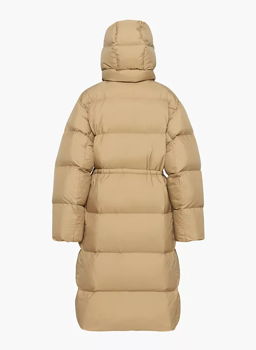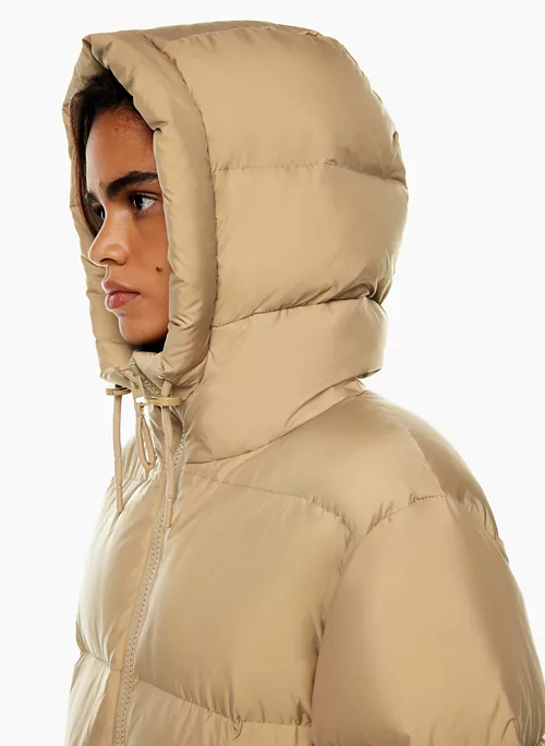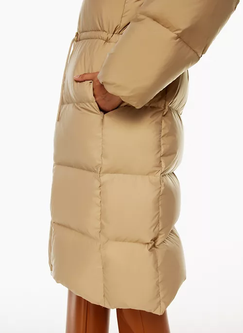 Engineered to deliver warmth to -30°C / -22°F, this is a long quilted puffer with a relaxed fit and a cinchable drawcord waist designed to keep the elements out. It’s constructed with (RE)Soft Satin — water-repellent fabric with a soft feel. It’s made with recycled materials.