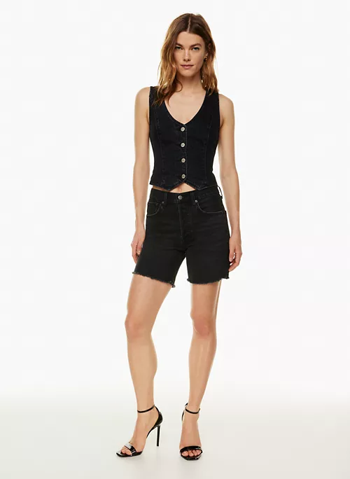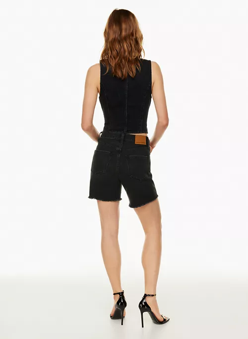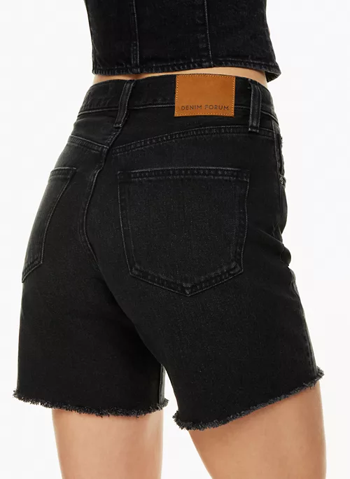 Inspired by women who pushed creative boundaries, the Yoko Short is Denim Forumās signature slim cut-off. A high rise and side slits give them extra personality, while premium Italian 100% cotton denim becomes more beautiful over time ā we call it performance art. This version comes in a washed black with a raw hem.Ā
