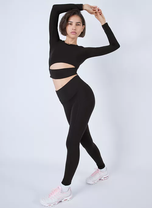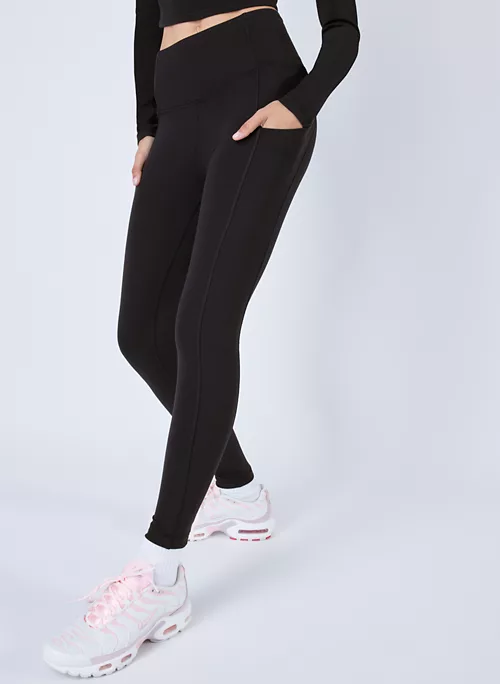 These are high-rise leggings with flattering seam lines, a drawcord waist, side tech pockets and our signature wide waistband. They’re made with TnaBREATHE™ — ultra-stretch, sweat-wicking fabric that’s flexible enough to train in with a smooth, soft-brushed feel.