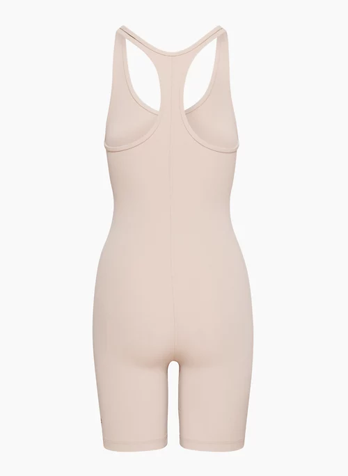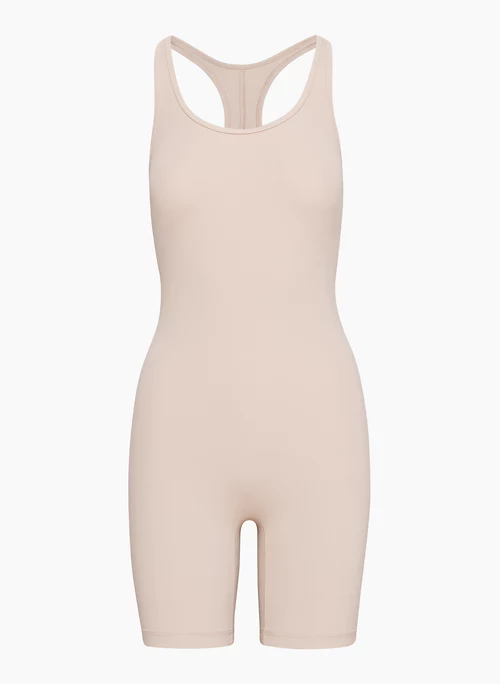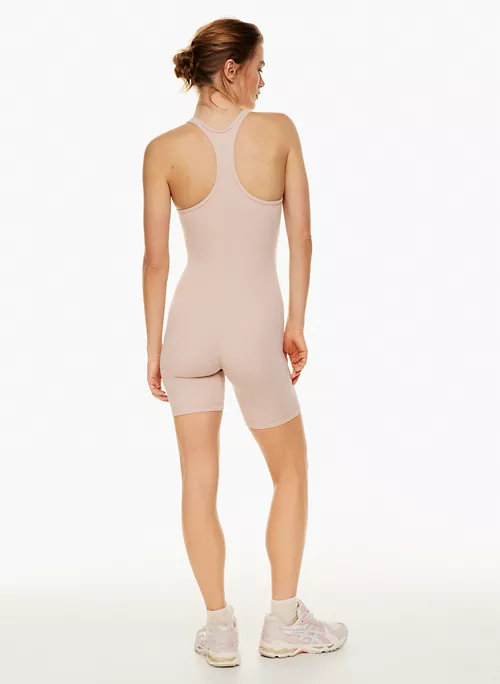 This is a scoop-neck romper with a racerback silhouette. It’s made with TnaBUTTER™ — a barely there, buttery soft sweat-wicking fabric that shapes to your body.