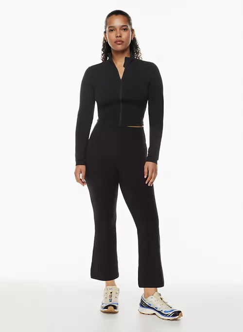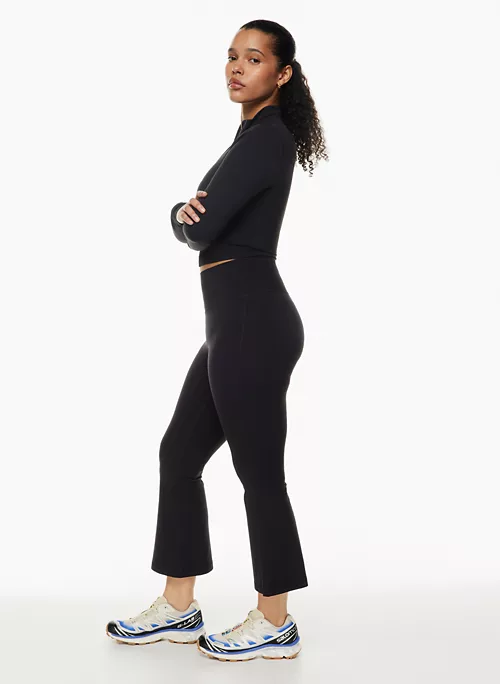 These are high-waisted, cropped kick-flare leggings with our signature wide waistband for a smooth silhouette. They’re made with TnaBUTTER™ — a barely-there, buttery soft sweat-wicking fabric that shapes to your body.