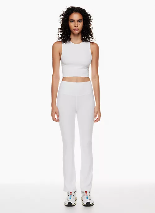 These are high-rise bootcut leggings that feature our signature wide waistband for a smooth silhouette. They’re made with TnaBUTTER™ — a barely-there, buttery soft sweat-wicking fabric that shapes to your body.