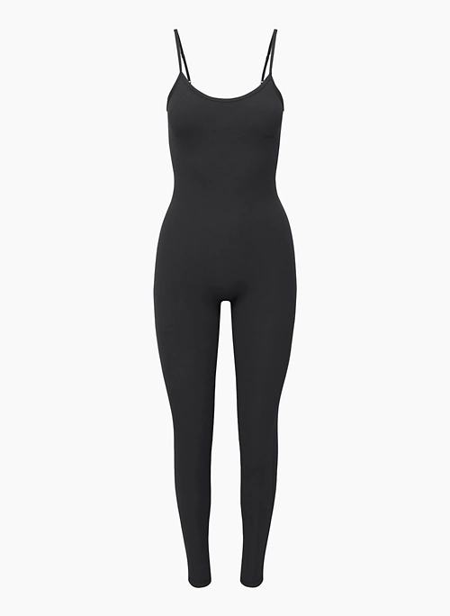 This is a scoop-neck jumpsuit with adjustable straps. It’s made with TnaBUTTER™ — a barely there, buttery soft sweat-wicking fabric that shapes to your body.