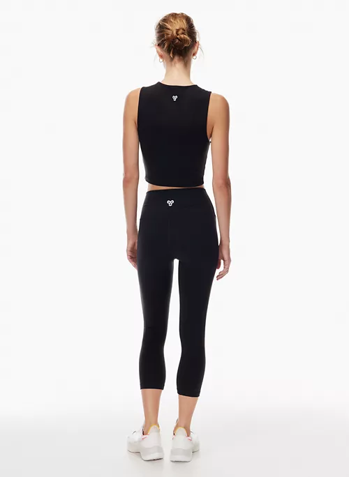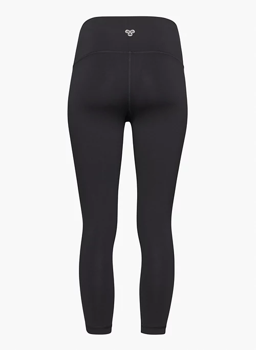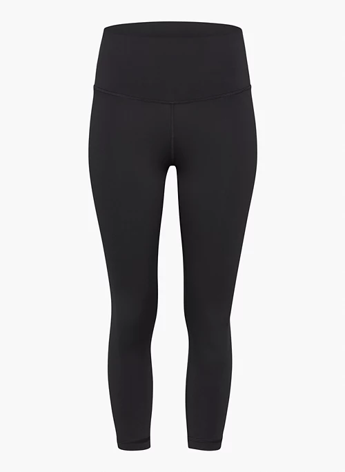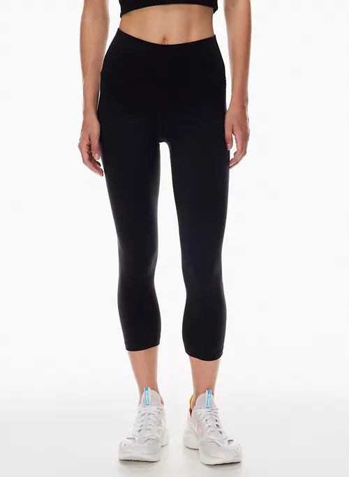 For lunge or lounge. These are cropped, high-rise leggings with our signature wide waistband for a smooth silhouette. They’re made with TnaLIFE™ — versatile high-stretch, sweat-wicking fabric that’s soft enough to lounge in but supportive enough to move in. This version has a smooth feel.