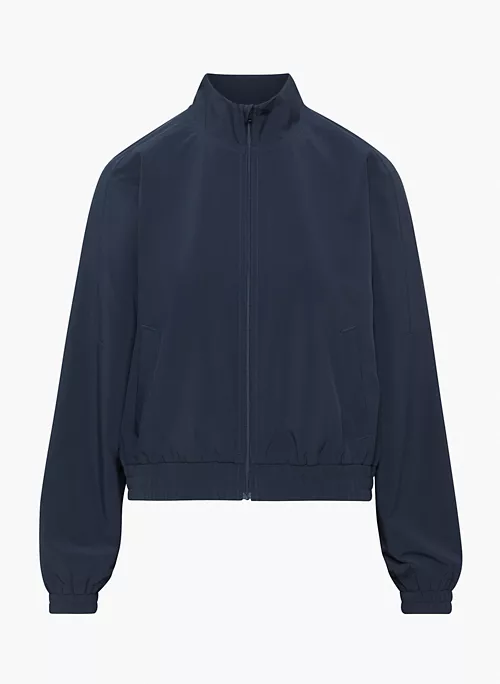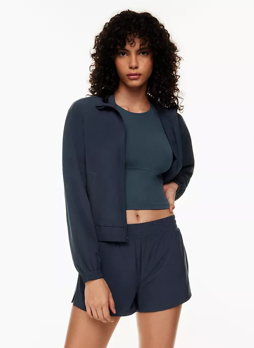 This is a relaxed-fitting zip-up jacket with hand pockets and elastic cuffs. It’s made from TnaMOVE™ — a sweat-wicking fabric with a cool feel that’s made with recycled materials.