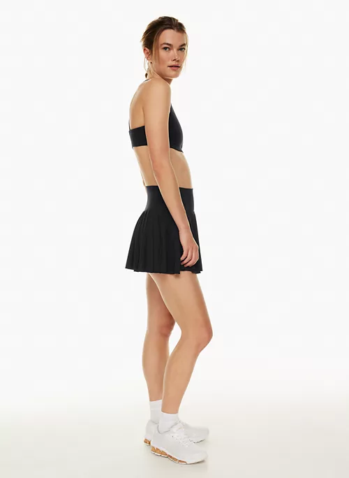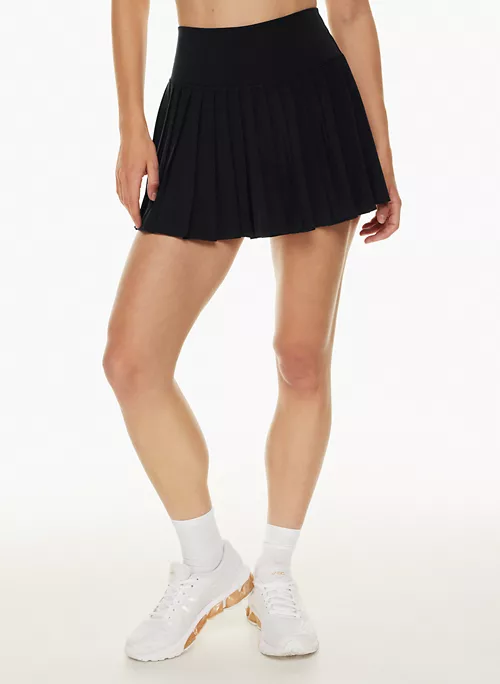 This is a pleated tennis skirt with functional ball pockets, built-in undershorts and a curved waistband specially designed to emphasize you know what. The skirt is cut from TnaMOVE™ — lightweight, sweat-wicking fabric with a smooth, cool feel and a natural drape that moves with you. It’s made with recycled materials. The undershorts are crafted with TnaSLICK™ — a sweat-wicking, breathable fabric with a slick, cool touch and sculpting feel.