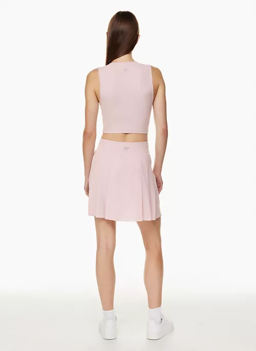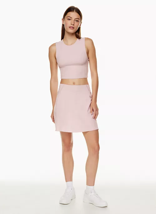 This is a mid-rise tennis skirt with a pleated back, built-in undershorts and functional ball pockets. The skirt is made with TnaMOVE™ — a sweat-wicking fabric with a cool feel that’s made with recycled materials. The undershorts are made with TnaSLICK™ — a sculpting, breathable fabric that’s sweat-wicking for a smooth, cool feel.