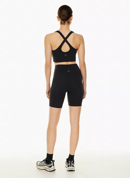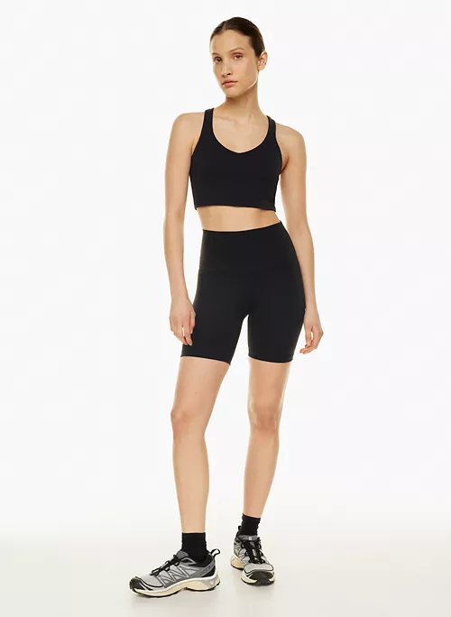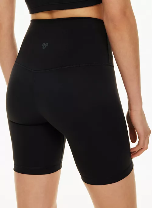 These are high-rise bike shorts with a curved waistband specially designed to emphasize you know what. They’re made with TnaSLICK™ — a sweat-wicking, breathable fabric with a slick, cool touch and sculpting feel.