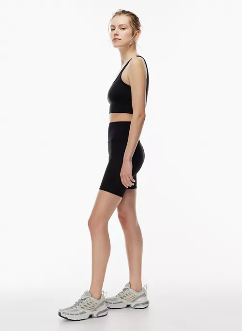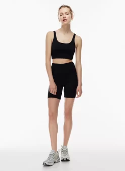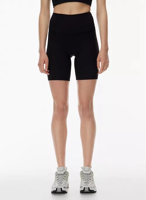 Get ribbed. These are high-rise bike shorts with side drop pockets and our signature wide waistband for a smooth silhouette. They’re designed for medium to ultra high-impact activities. They’re made with TnaSLICK™ — a sculpting, breathable fabric that’s sweat-wicking for a smooth, cool feel.