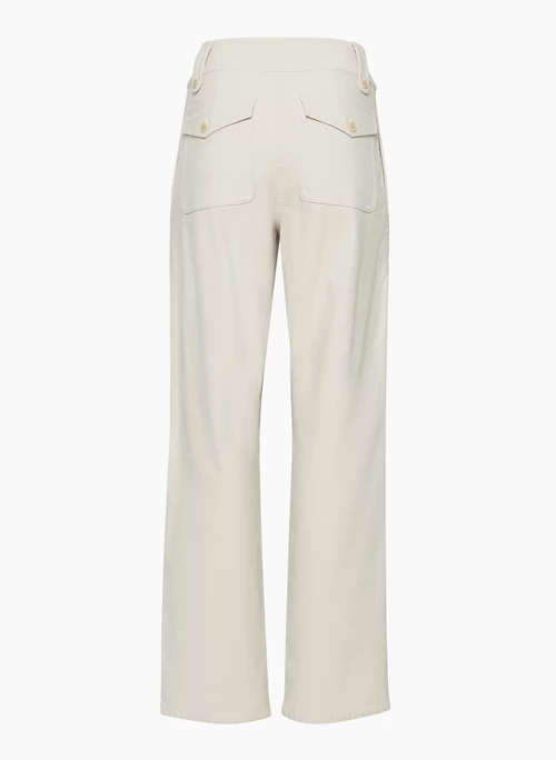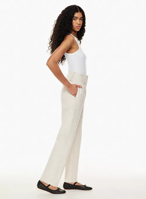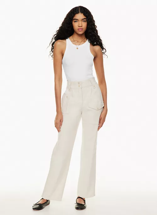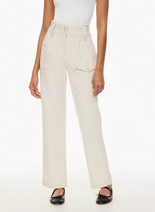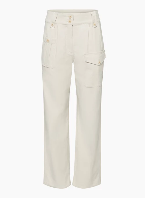 These are super high-rise cargo pants with a tapered leg and patch pockets. They’re made from soft-brushed reverse sateen.