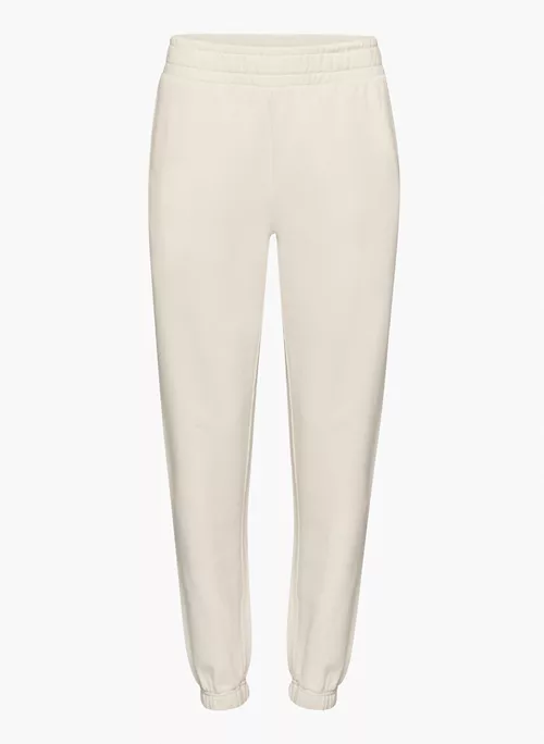 These are high-rise joggers with dart pockets. They’re made with midweight 100% organic cotton French terry.Â