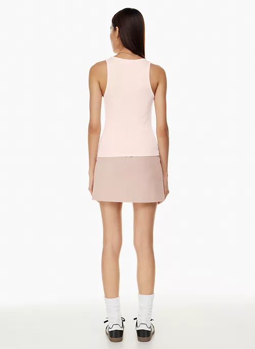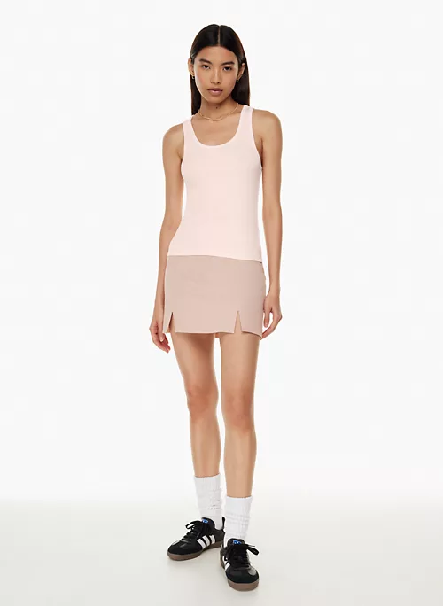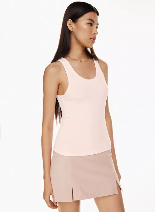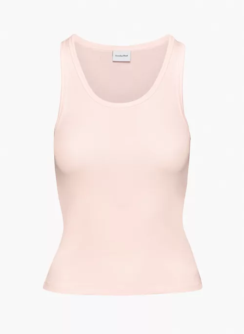 This is a singlet-style tank with a scoop neckline. Itās made with ReRIBā¢, a soft and drapey ribbed fabric that uses TENCEL⢠Modal ā responsibly sourced wood-based fibres produced through a process that reduces impact on forests, biodiversity and water supply.