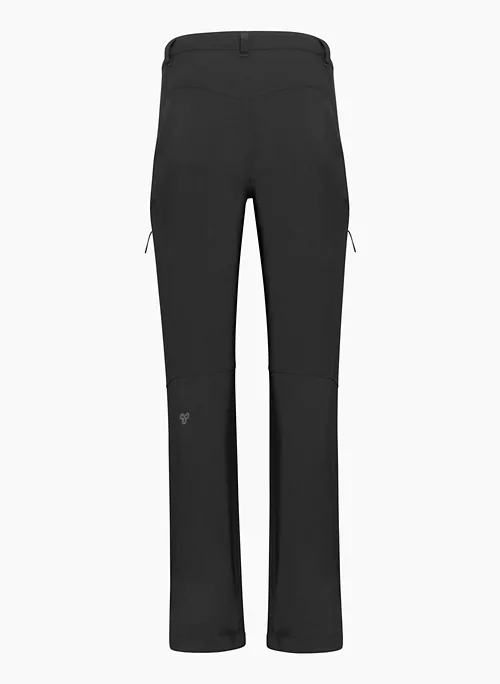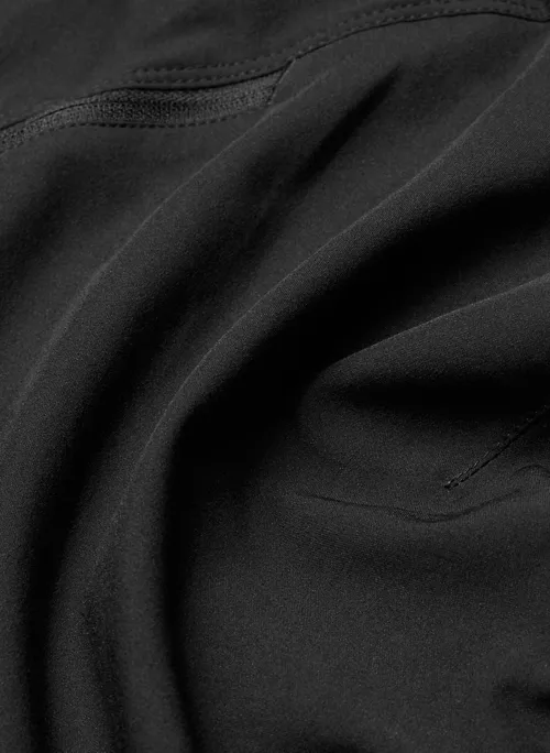 These are mid-rise hiking cargo pants with hand and thigh pockets that zip closed for secure storange. They’re made with ultra-light, sweat-wicking fabric with a smooth feel. This fabric is made with 100% recycled materials.