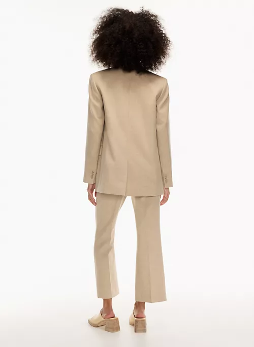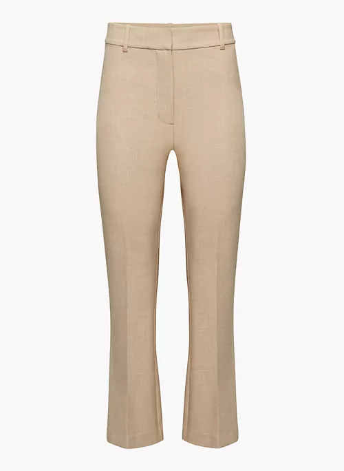 These are high-waisted pants with a kick flare leg and back welt pockets. Theyāre made with Hold Suiting ā lightly structured stretch suiting fabric made with recycled materials and LENZING⢠ECOVERO⢠Viscose ā responsibly sourced wood-based fibres produced through a process that reduces impact on forests, biodiversity and water supply.