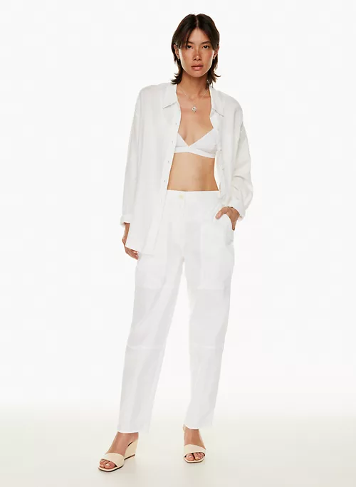 These are cargo pants with adjustable waist tabs, back welt pockets and patch hand pockets. They’re made with ParaLite — lightweight, parachute-inspired fabric with a washed-down feel.