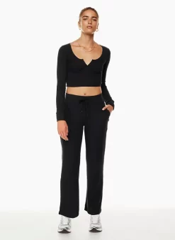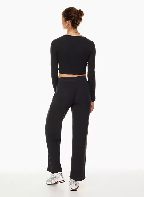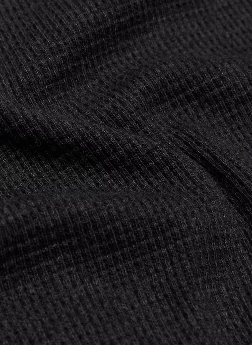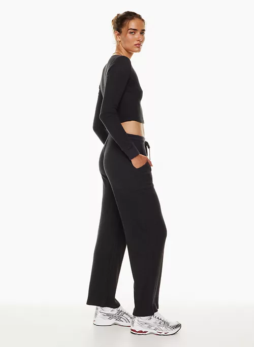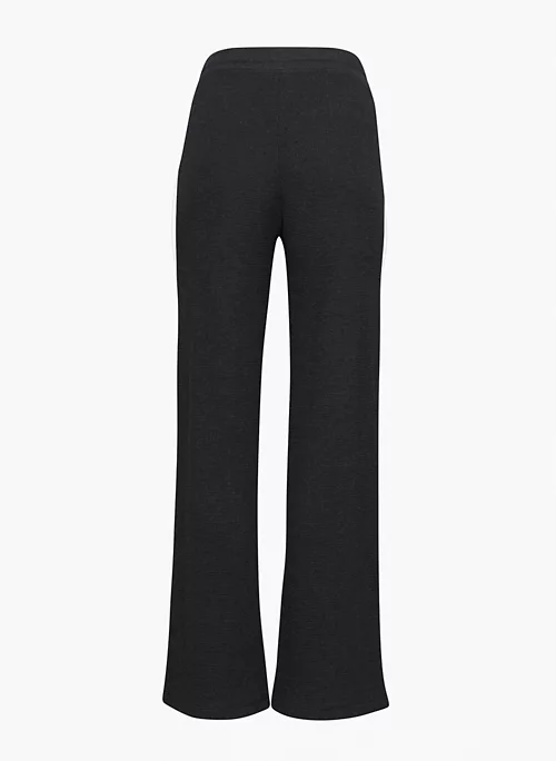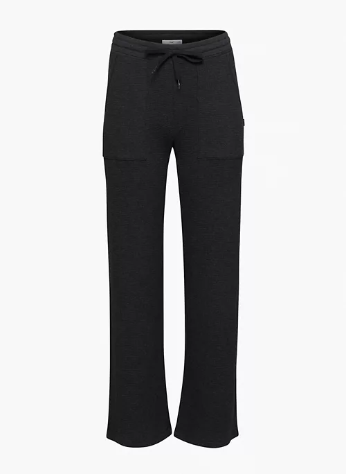 These are mid-rise, wide-leg thermal joggers with patch pockets and an elastic waist. They’re made with soft and textural waffle-knit fabric.